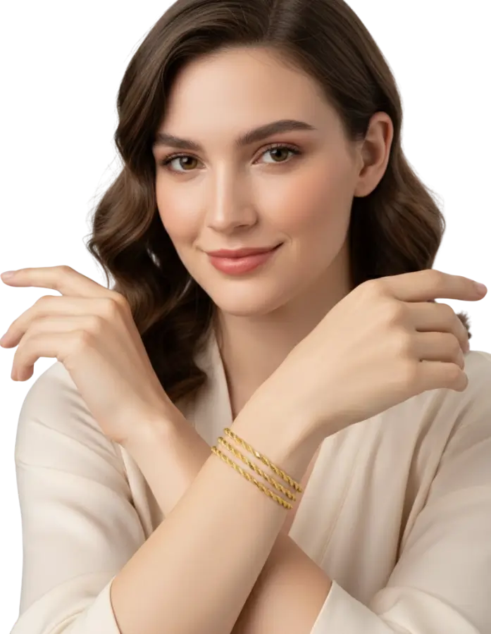Zarafetin ve şıklığın hafif dokunuşu! 20 gr 22 Ayar 2’li Burma Bilezik, 22 ayar altının büyüleyici ışıltısıyla bileğinize eşsiz bir zarafet katıyor. 20 gramlık bu hafif ve zarif bilezik, ikili burma deseniyle tasarlanmış olup, hem günlük kullanımda hem de özel anlarda tarzınızı tamamlamak için mükemmel bir seçim. Burma deseninin kıvrımlı ve göz alıcı estetiği, ustalıkla işlenmiş detaylarla birleşerek bileğinizde adeta bir sanat eseri yaratıyor. Bu bilezik, kalite ve zarafeti bir araya getiriyor; ister tek başına kullanın, ister diğer aksesuarlarla kombinleyin, her anınıza ışıltı ve ihtişam katacak!