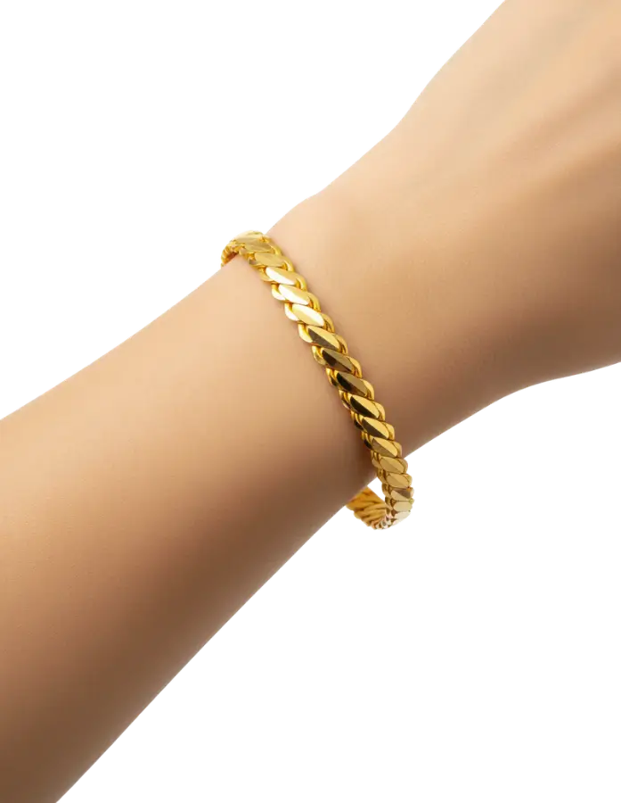 Zarafetin ve şıklığın eşsiz birleşimi! 20 gr 22 Ayar 3’lü Burma Bilezik, 22 ayar altının büyüleyici ışıltısıyla bileğinize benzersiz bir dokunuş katıyor. 20 gramlık bu zarif bilezik, üçlü burma deseniyle tasarlanmış olup, hem günlük kullanımda hem de özel anlarda tarzınızı tamamlamak için mükemmel bir seçim. Burma deseninin kıvrımlı ve göz alıcı estetiği, ustalıkla işlenmiş detaylarla birleşerek bileğinizde adeta bir sanat eseri yaratıyor. Bu bilezik, kalite ve zarafeti bir araya getiriyor; ister tek başına kullanın, ister diğer aksesuarlarla kombinleyin, her anınıza ışıltı ve ihtişam katacak!